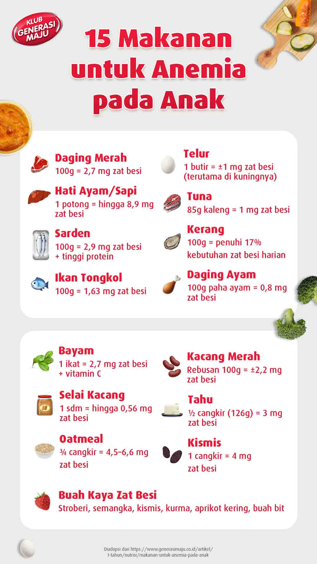 Makanan untuk anemia pada anak berperan untuk mendukung pemberian suplemen agar penyembuhan optimal.