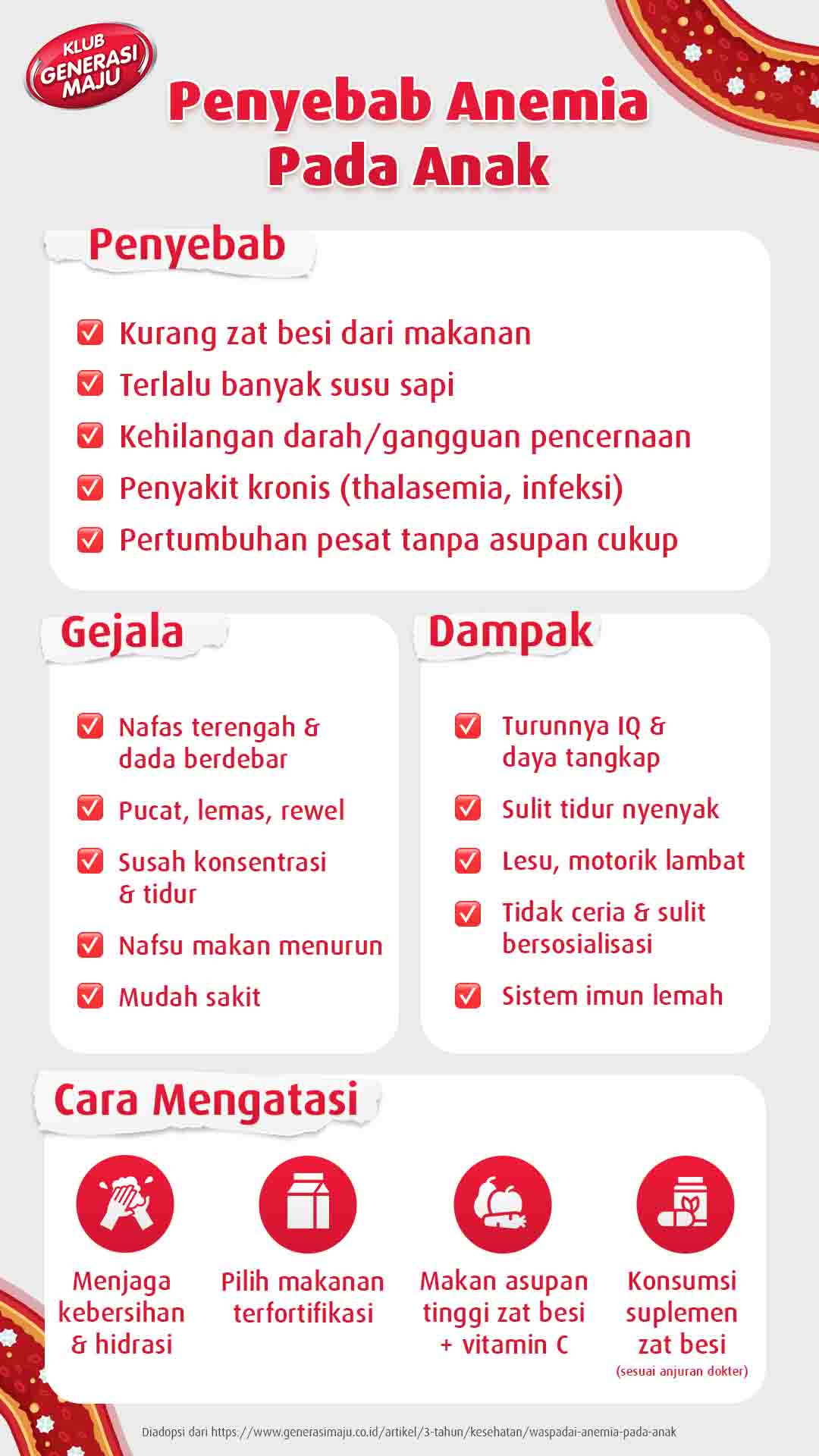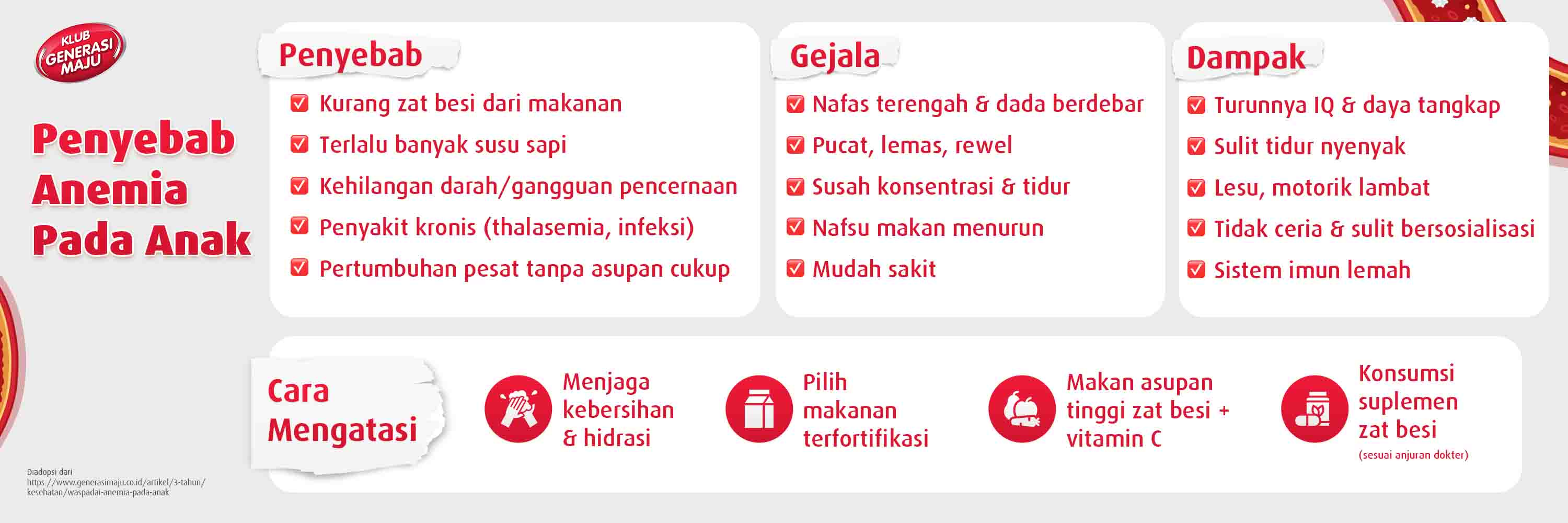 Bunda juga bisa bergabung di Klub Generasi Maju untuk mendapatkan berbagai artikel terbaru seputar cara mencegah anemia pada anak dan panduan memenuhi kebutuhan zat besi si Kecil. Daftar gratis, sekarang!