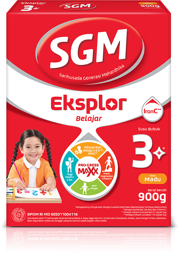 Jangan lupa juga selalu berikan si Kecil asupan nutrisi dari makanan bergizi dan susu bubuk yang terfortifikasi seperti SGM Eksplor 3+, ya!