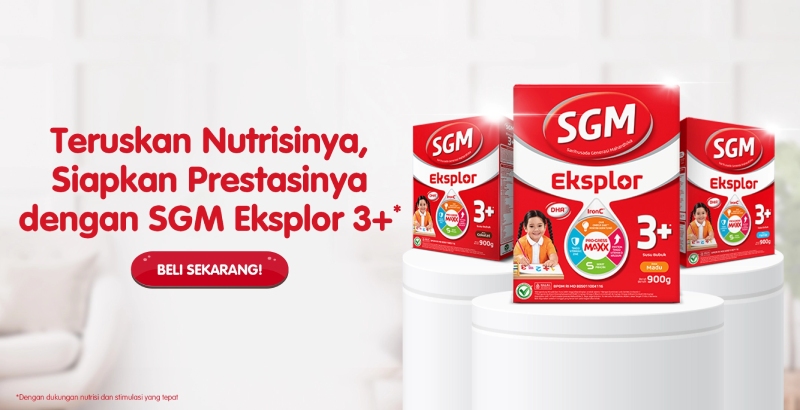 Oh iya Bunda, jangan lupa juga untuk terus melengkapi kebutuhan gizi harian anak lewat pemberian susu bubuk yang telah diperkaya dengan berbagai nutrisi esensial, seperti susu SGM Eksplor 3+.